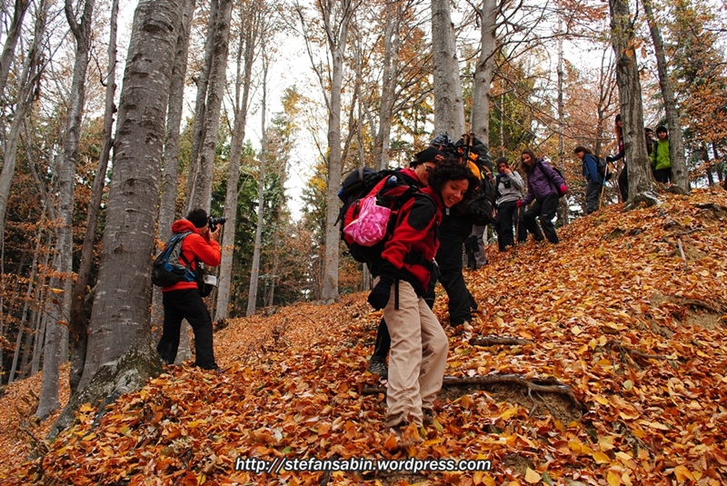 Zabovim totusi putin acolo si ne facem provizii de paducel si macese pentru acasa apoi coboram pe acelasi drum la masini, alunecand teribil pe frunze, tavalindu-ne continuu si cantand ” E prapastie, ce misto!”(adaptare dupa melodia urmatoare)