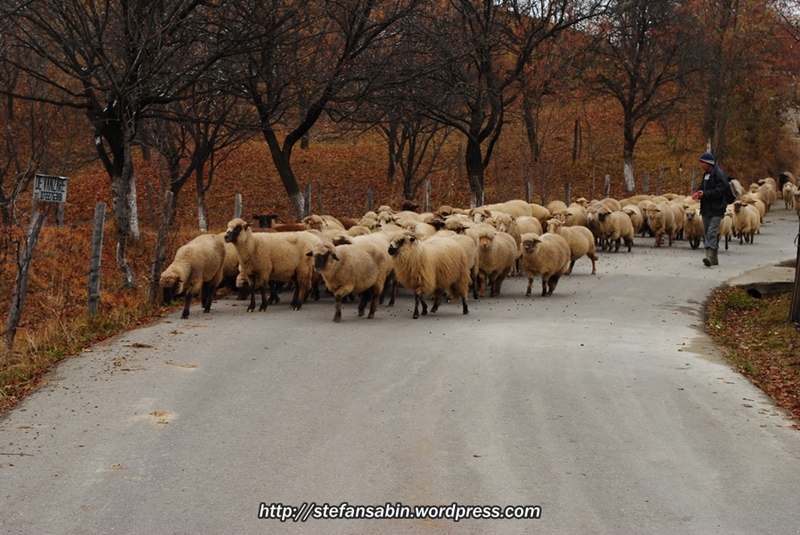 Ajungem la soseaua asfaltata ce duce spre Şotriile si continuam o portiune pe ea. Pe marginea drumului mai facem o pauza de masa si suntem asaltati de o turma de oi.